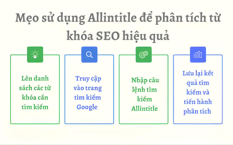 Khi bạn đã quen, việc chọn toán tử nào kết hợp với Allintitle có thể tùy theo mục tiêu, bạn kiểm tra đối thủ, kiểm tra nội dung, hay kiểm tra tiêu đề.